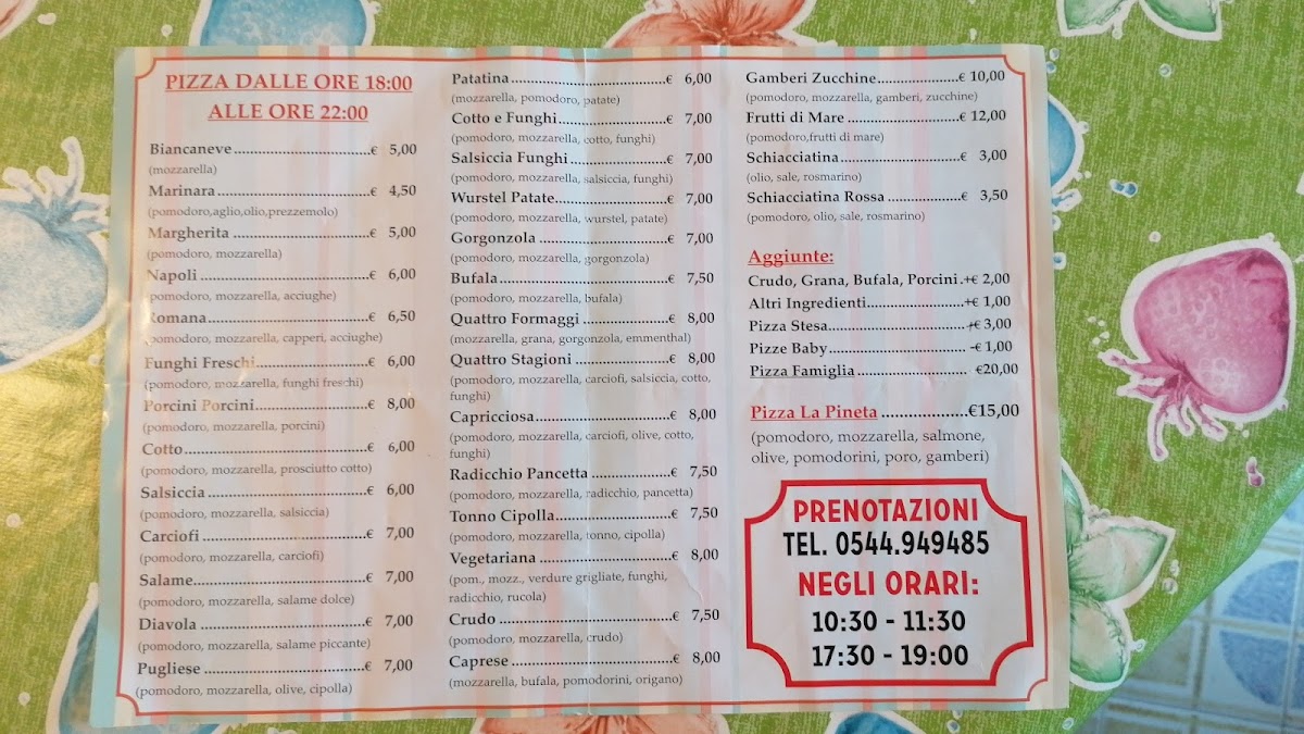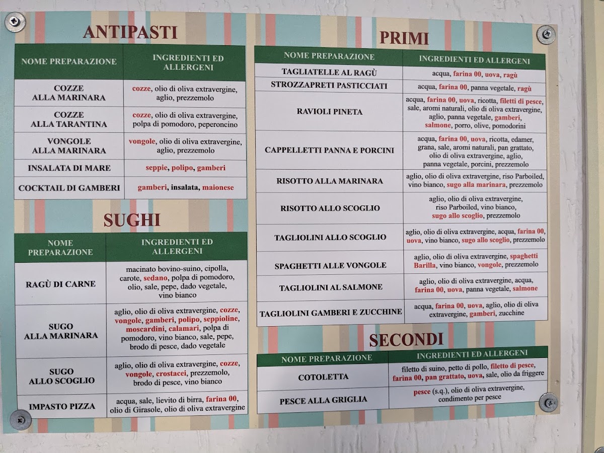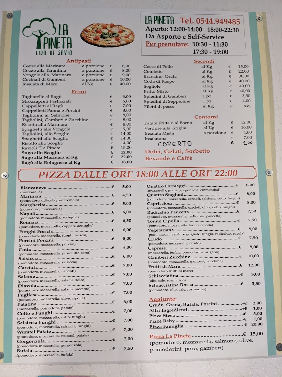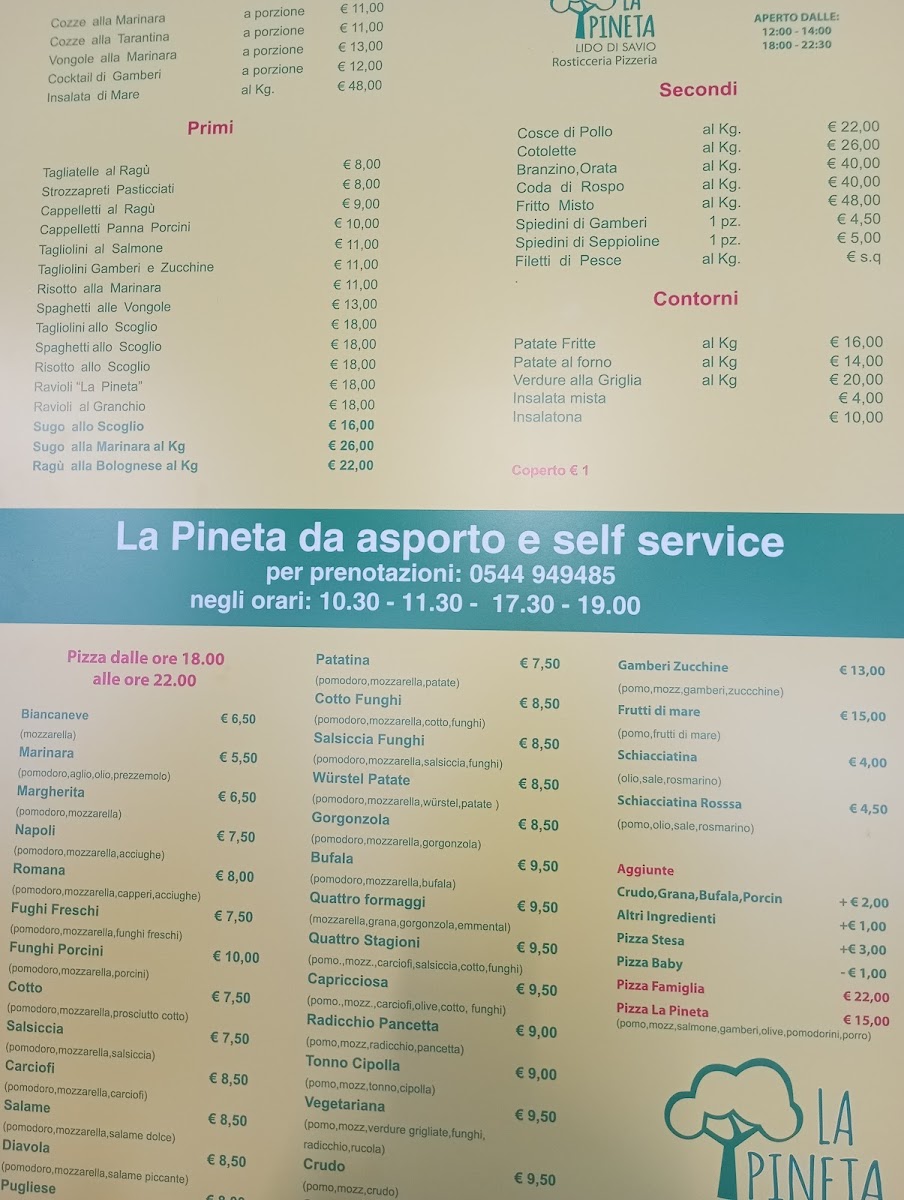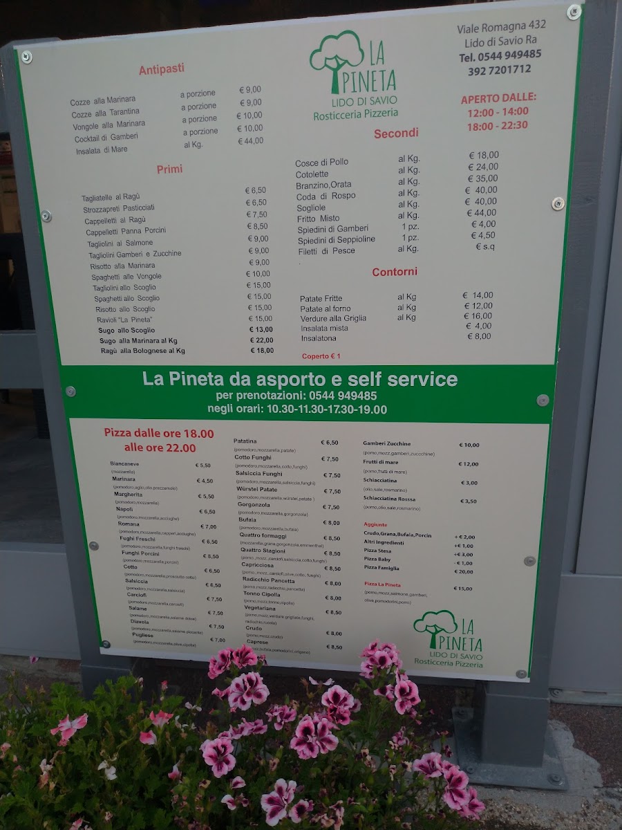 The menu at Rosticceria Pizzeria La Pineta offers a delightful selection of traditional Italian dishes that promise to satisfy a variety of tastes. For pasta lovers, the Spaghetti with Seafood stands out, combining fresh seafood with perfectly cooked spaghetti, creating a harmonious balance of flavors. The pizza selection is also impressive, with options like the classic Pizza Margherita, a simple yet delicious choice with fresh mozzarella and basil, and the Pizza Capricciosa, a rich and savory option topped with a mix of ham, mushrooms, artichokes, and olives.